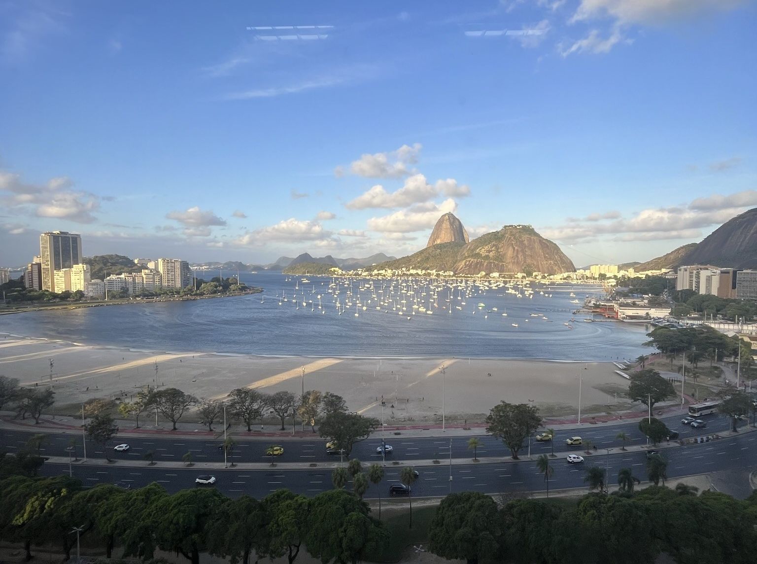 Výhled z EY kanceláře v Rio de Janeiru. V pozadí je proslulý vrchol Pão de Açúcar (Cukrová homole).